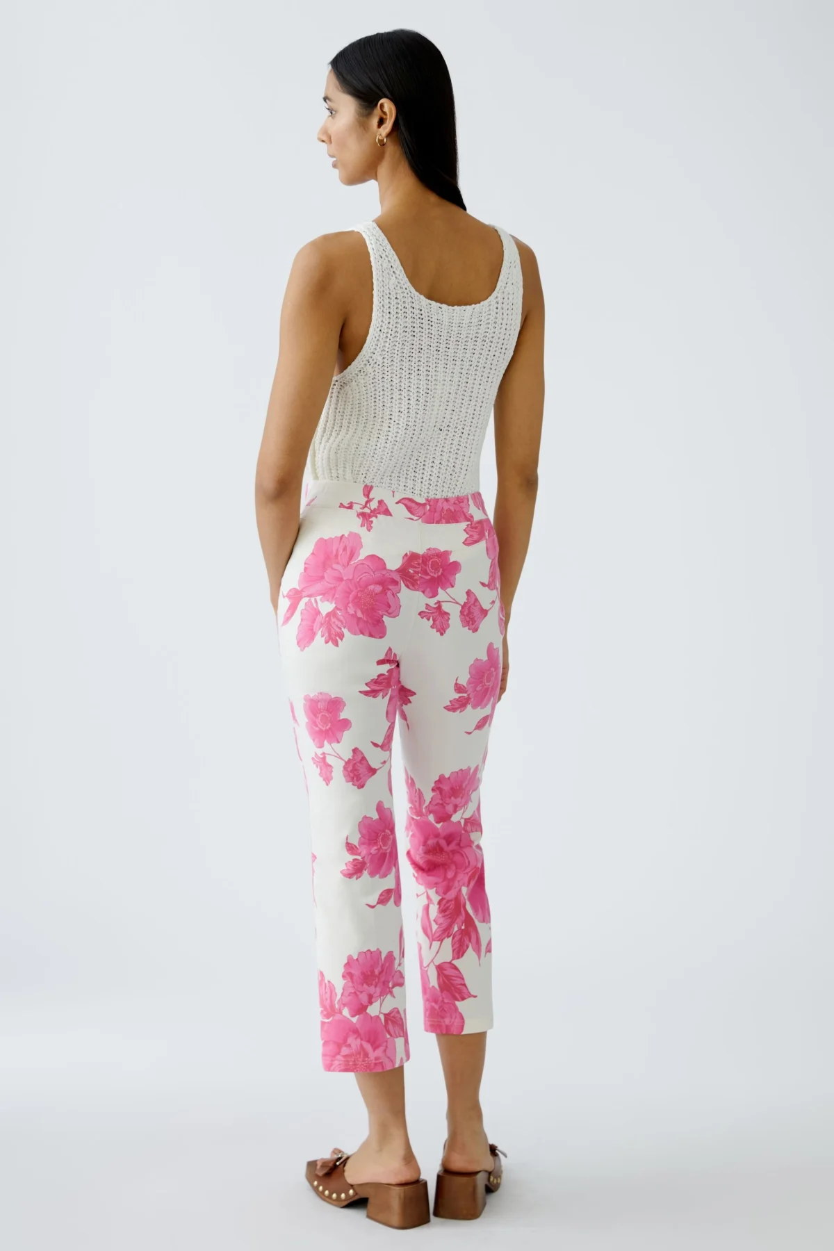 Брюки-капри Oui с оптимизирующими фигуру вытачками – удобные и стильные из эластичнаой хлопковой смеси с цветочным принтом по всей поверхности. Эластичный пояс с внутренней стороны, без застежки.
