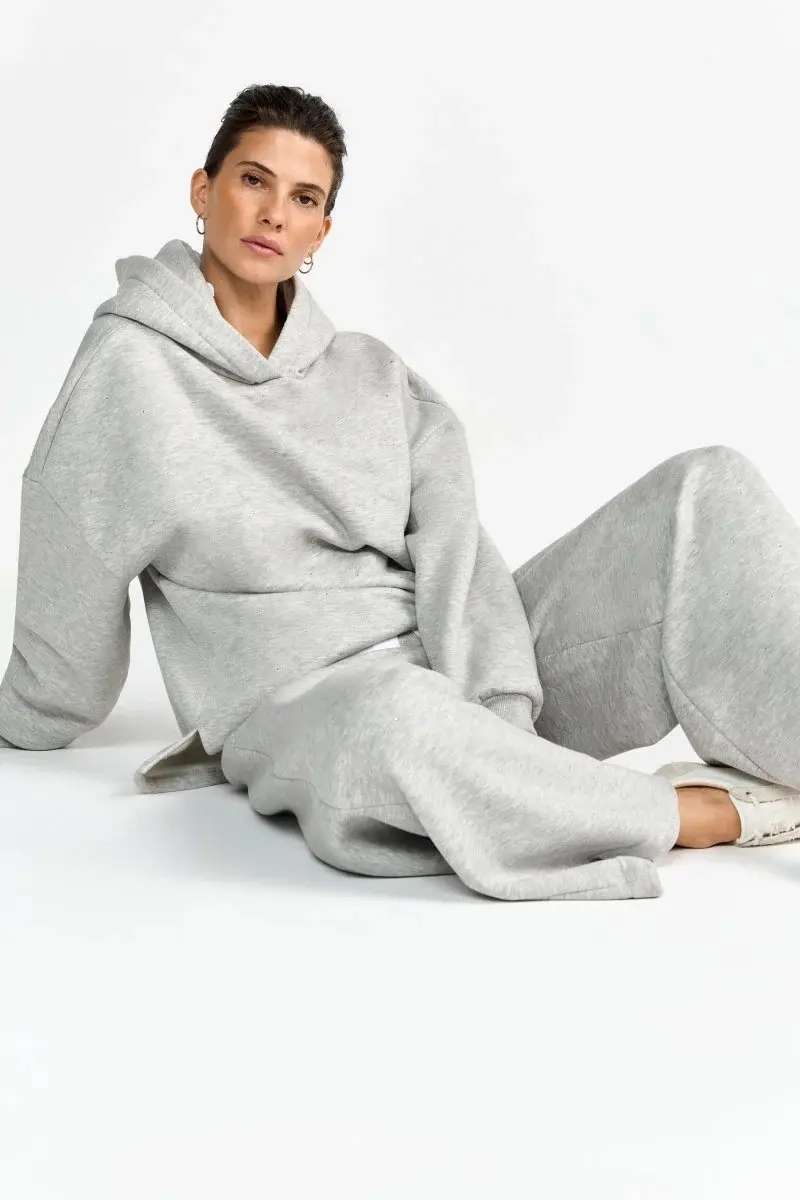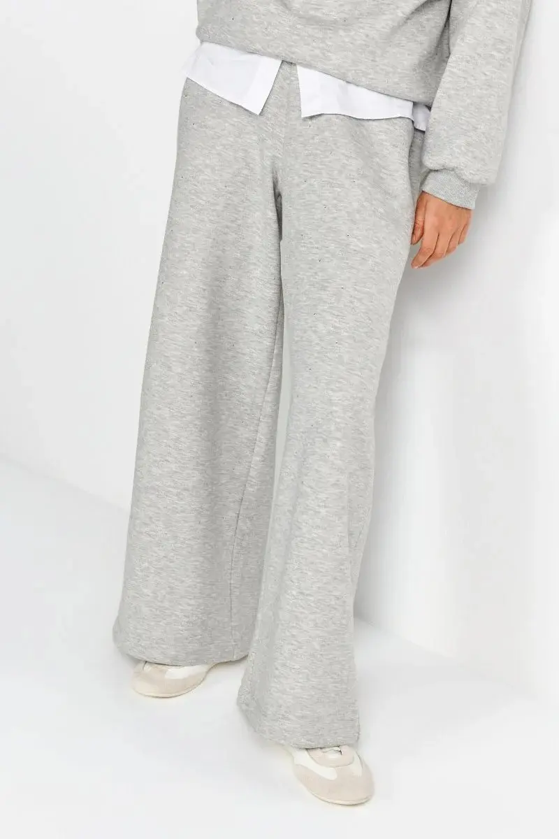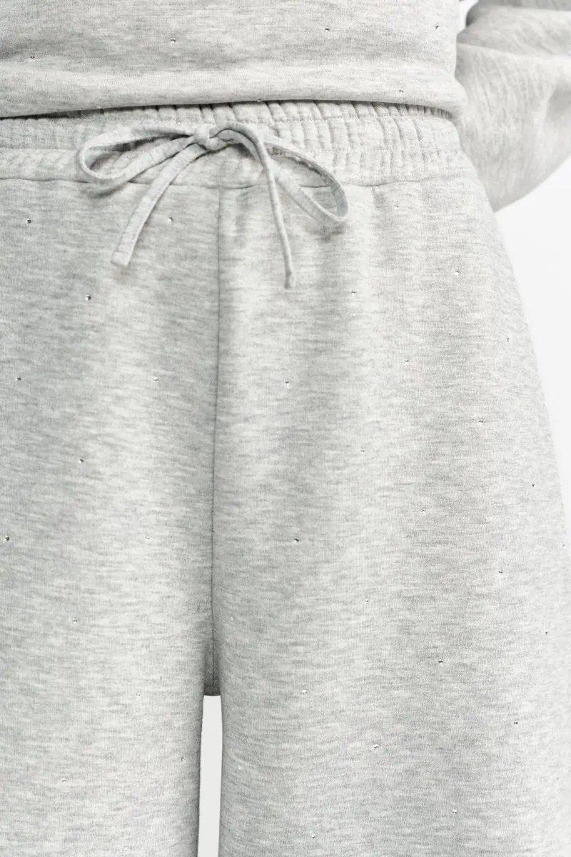 Эти светло-серые спортивные брюки широкого кроя с изящными стразами сочетают в себе комфорт и стиль. Мягкий хлопковый материал, эластичный пояс и свободный крой делают их незаменимой вещью для непринужденных повседневных образов.