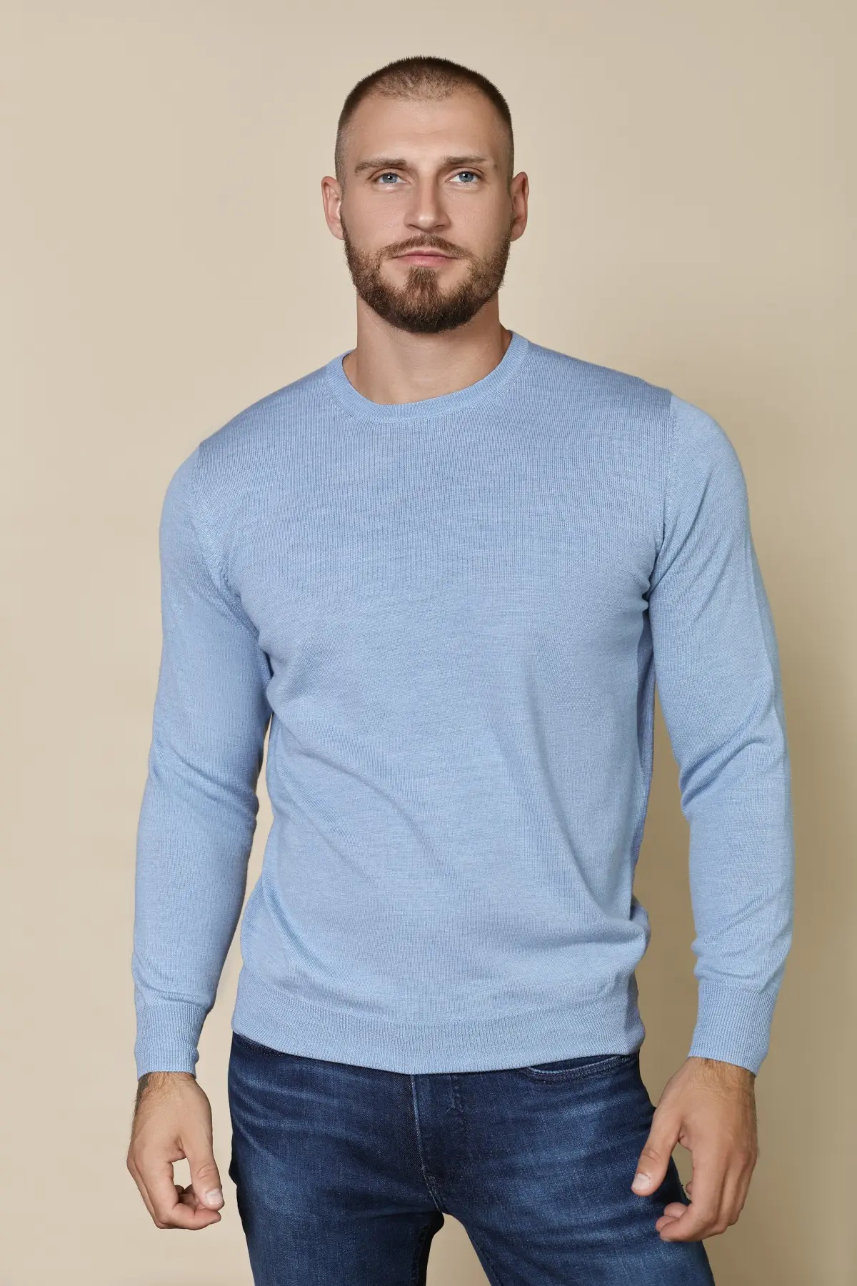 Джемпер голубого цвета из шерсти мериноса Alan Paine прекрасно подходит для создания многослойных образов. Носите его под пиджаком или поверх рубашки.