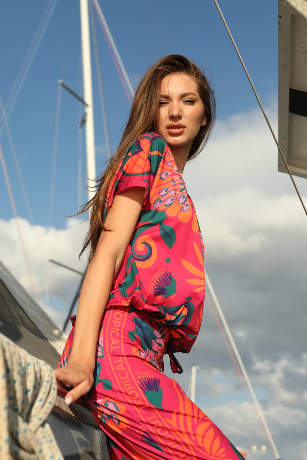 Футболка Oui с завязками сбоку, регулирующими посадку. У футболки круглый вырез, прямой крой и свободный рукав.