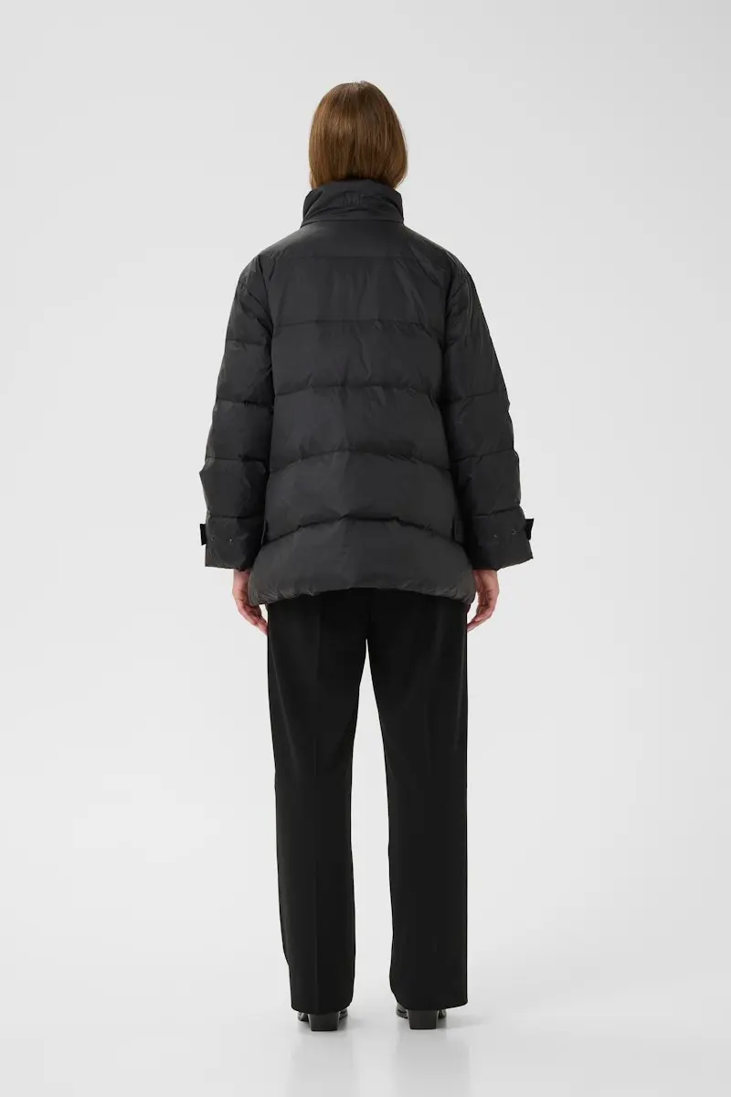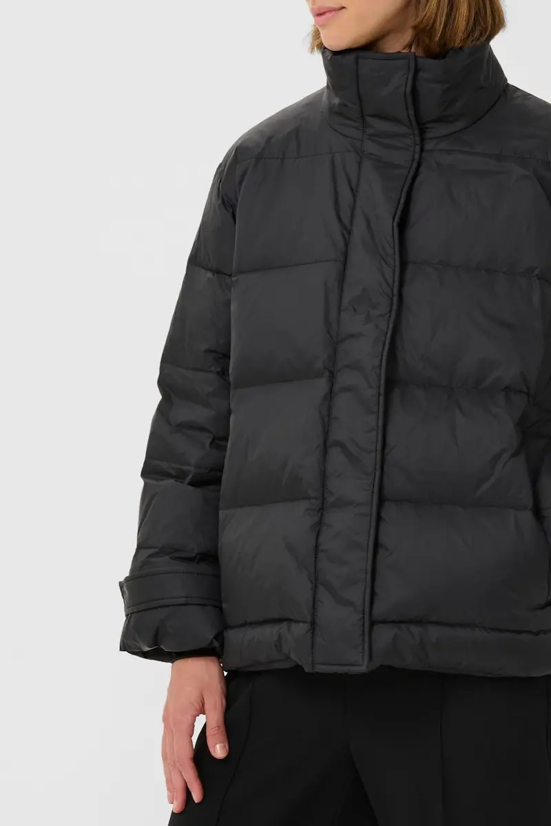 Эта пуховая куртка отличается свободным кроем и вневременным силуэтом, высоким воротником-стойкой, длинными рукавами и потайной застежкой спереди для дополнительного комфорта и универсального стиля в холодные дни.