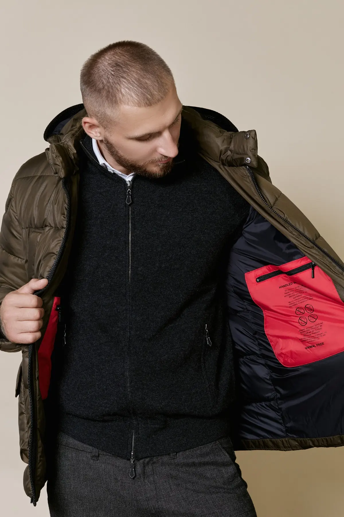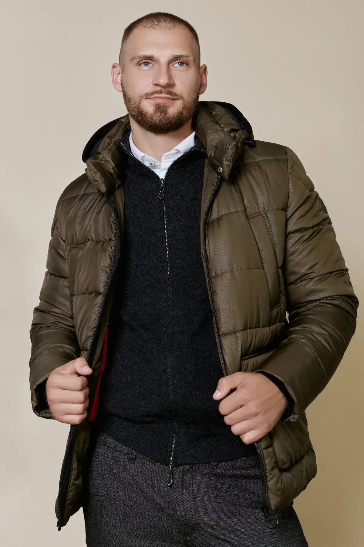 Теплая куртка New Canadian с капюшоном, у куртки карманы на груди, боковые карманы и внутренний карман на молнии.