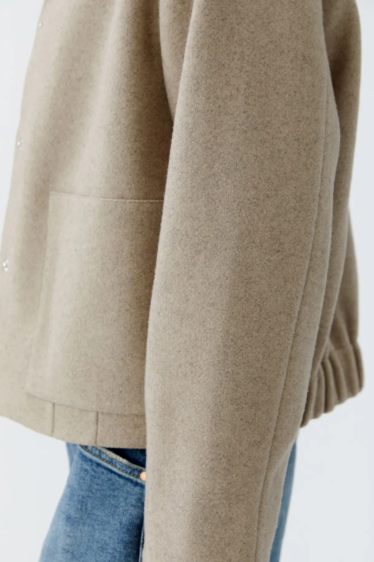 Повседневная легкая куртка Oui из мягкой ткани с шерстяным эффектом небрежного кроя с воротником и планкой на кнопках по всей длине, большими накладными карманами с боковым доступом.