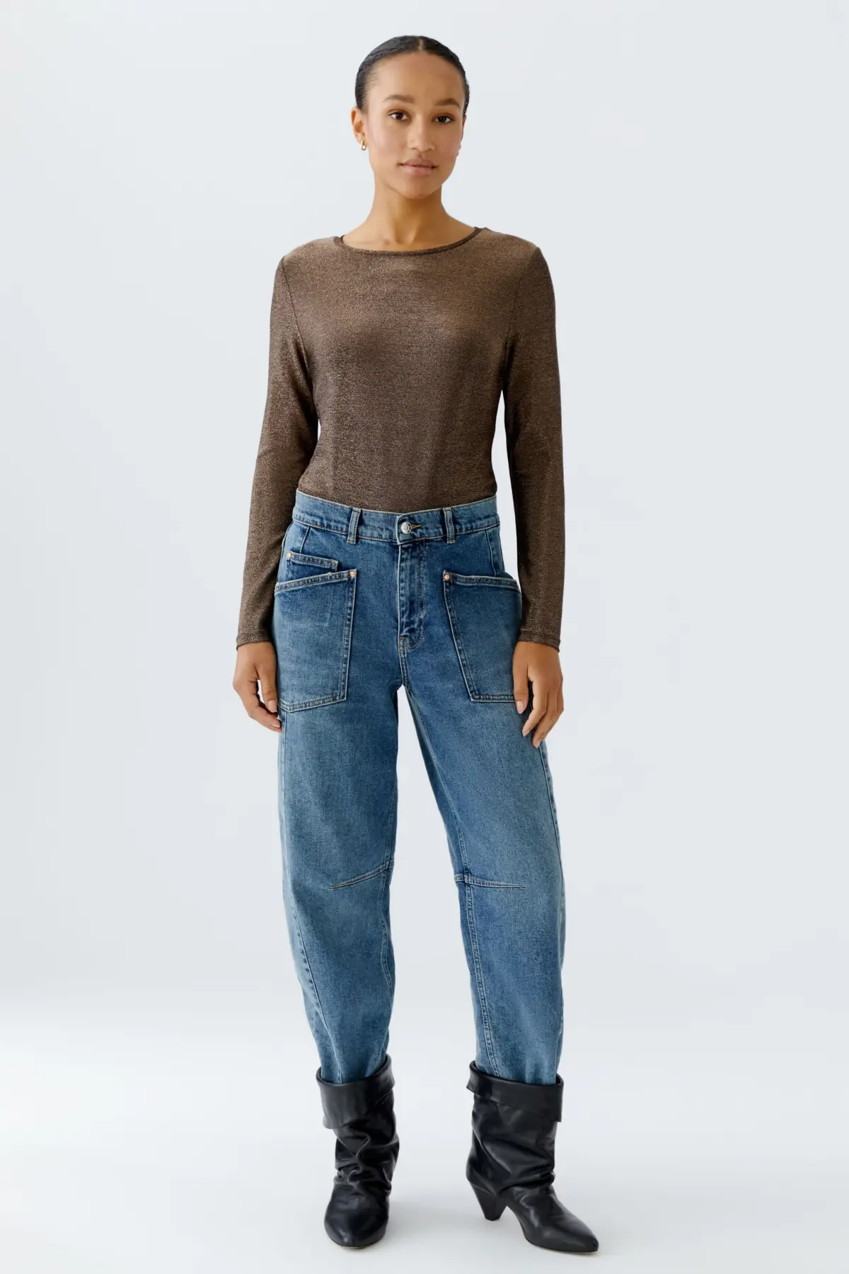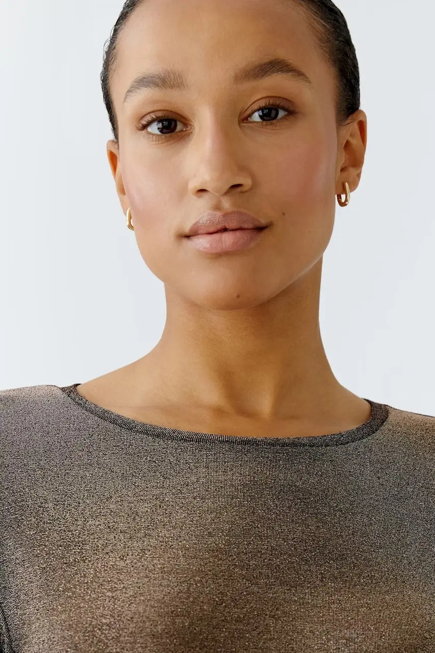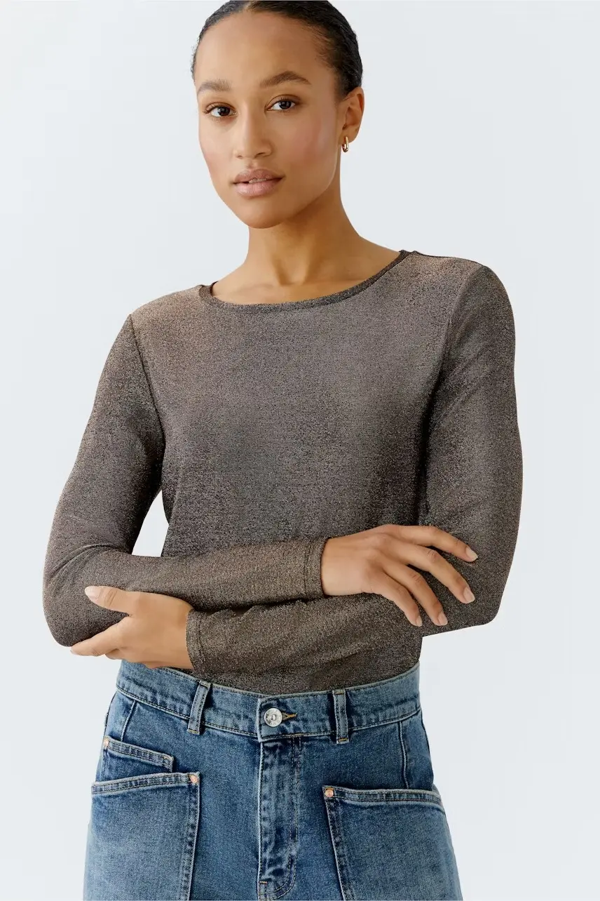 Лонгслив Oui из мягкого трикотажа — идеальный нижний слой с блеском. У лонгслива облегающий крой, стандартная длина, круглый вырез с отделкой.