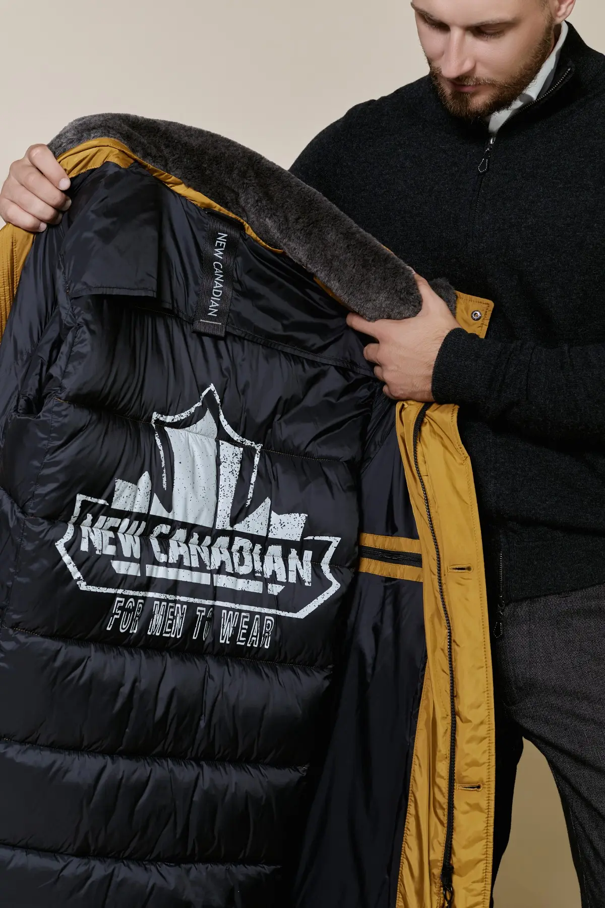 Парка New Canadian с ветроотталкивающими и водоотталкивающими свойствами, со съемным капюшоном и съемным воротником из искусственного меха. Боковые нагрудные карманы закрываются на кнопки, два закрывающихся внутренних кармана, два закрывающихся двусторонних кармана с клапанами, потайная молния с планкой на пуговицах.