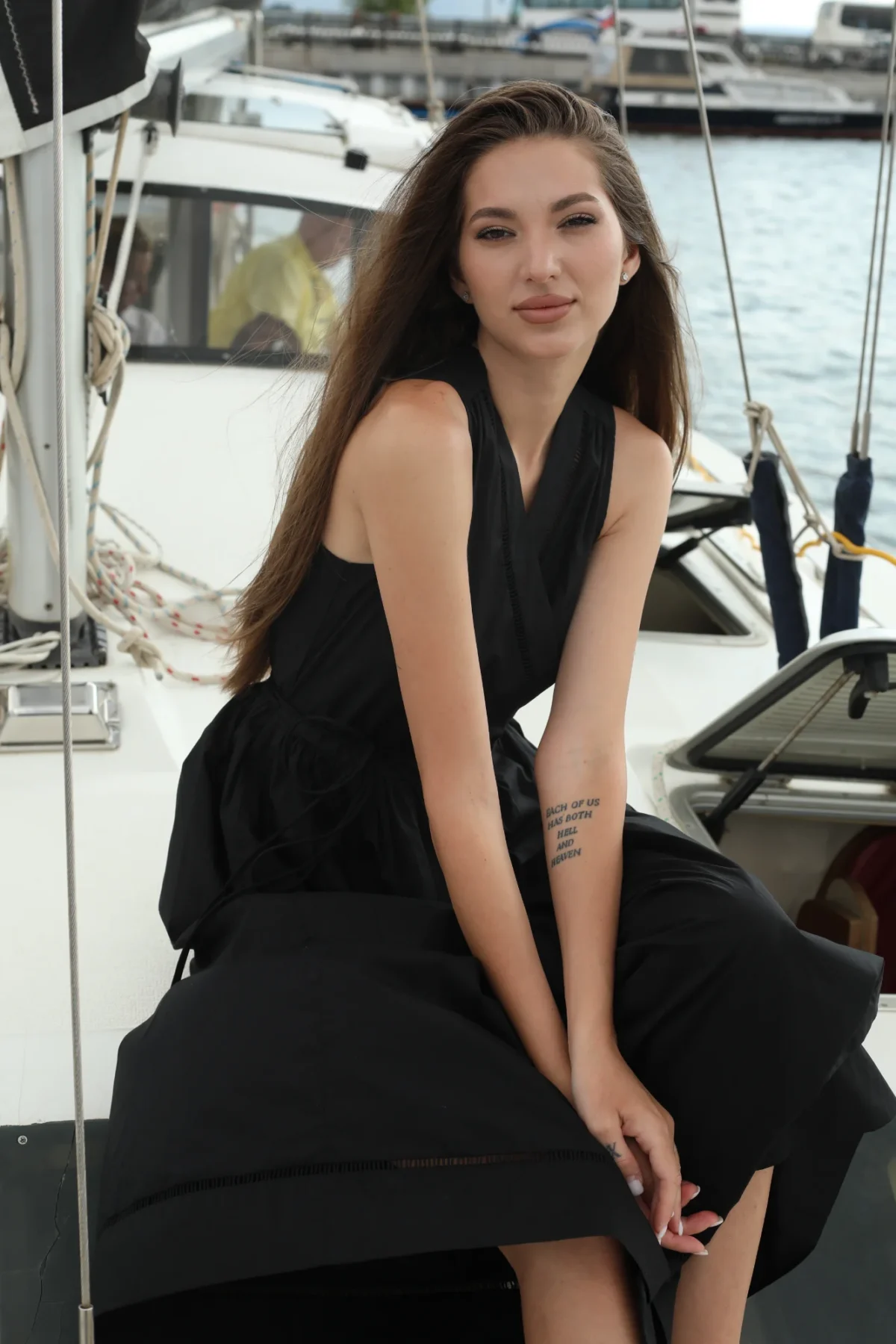 Воздушное, женственное летнее платье из хлопка InWear.Платье без рукавов из поплина с запахом спереди и вышитой отделкой по вырезу. Талия завязывается поясом, юбка слегка расклешенная, объемная, с боковыми карманами.