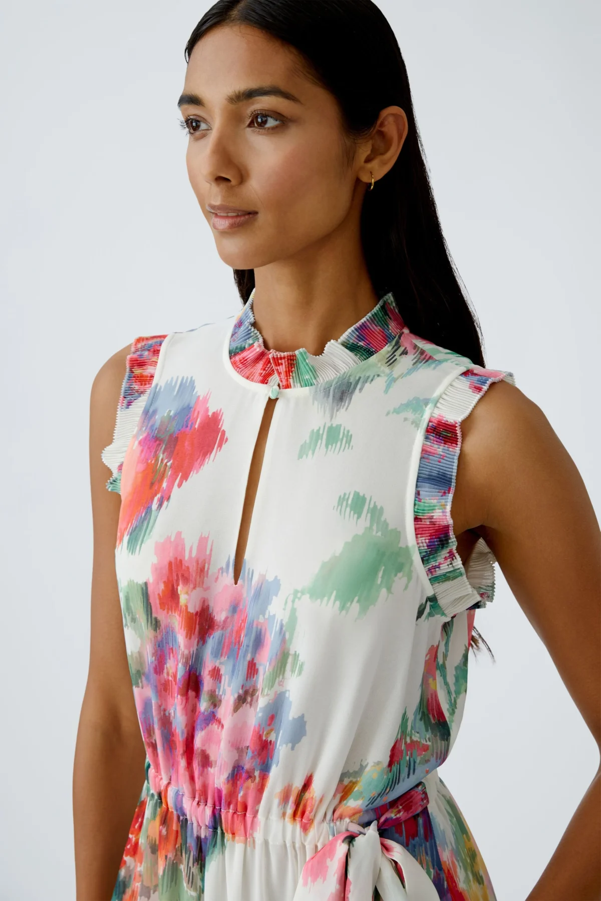Платье из шифона Oui — удобный фасон без застежек, с резинкой на талии и завязками сбоку. У платья приталенный крой и V-образный вырез.