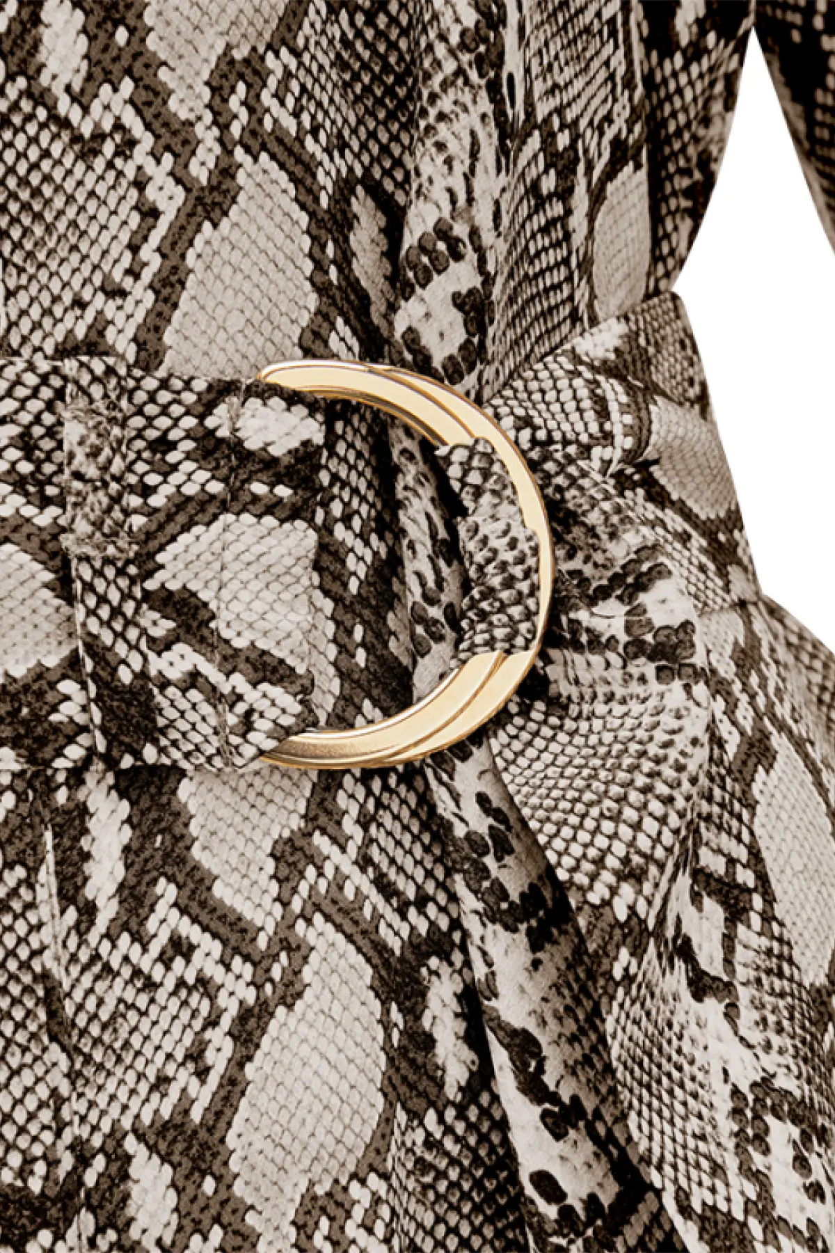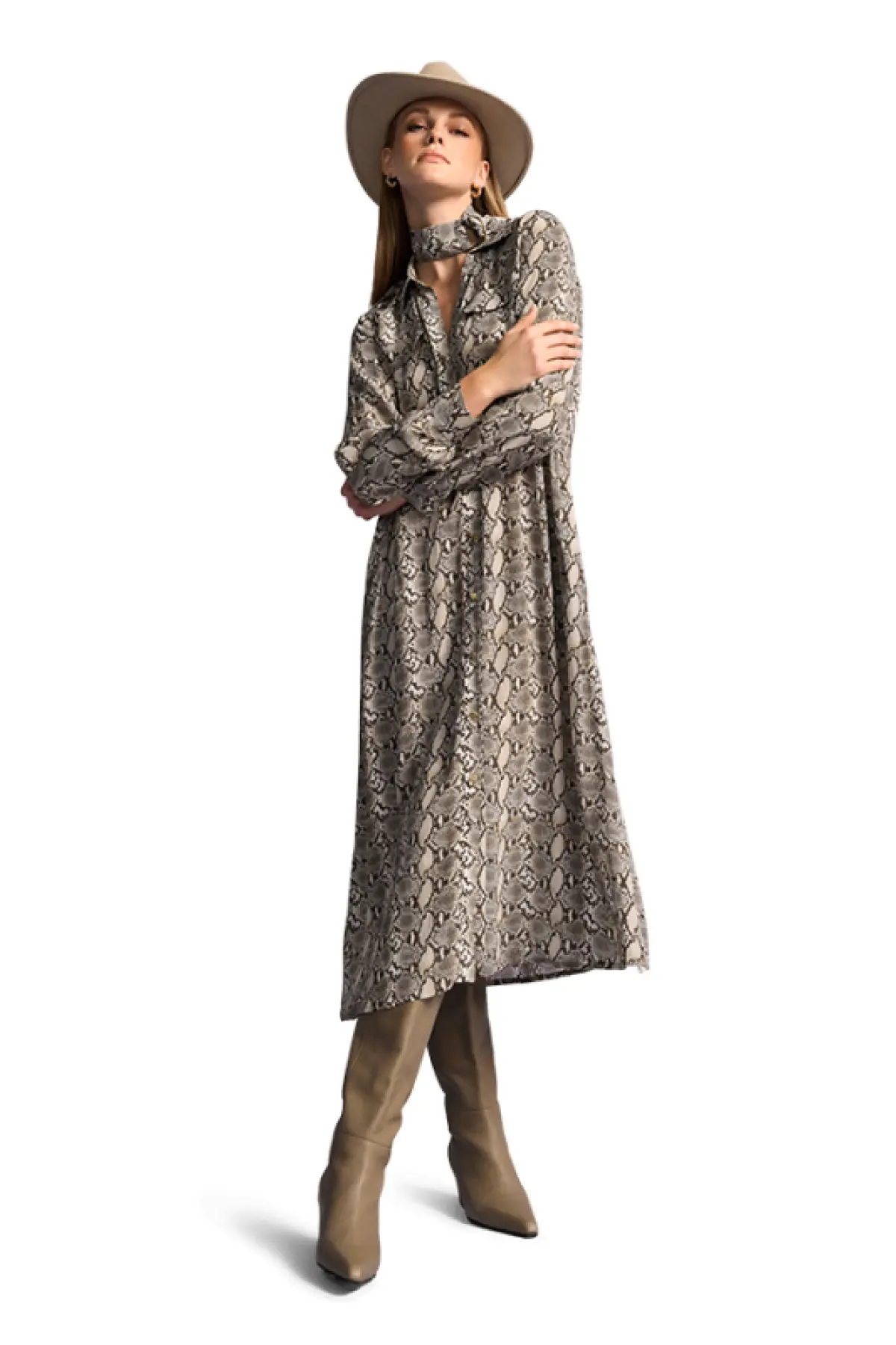 Элегантное макси-платье от RIANI сочетает в себе женственный шик и эффектный змеиный принт, создавая соблазнительный образ. Струящийся крой с подчеркнутой талией и классическим воротником искусно выделяет силуэт и придает платью вневременную элегантность. Длинные рукава с манжетами гармонично завершают дизайн. Изготовленное из высококачественной вискозы, длинное платье приятно легкое и мягкое на ощупь – идеально подходит для стильных выходов, оставляющих неизгладимое впечатление. Обязательный элемент гардероба для всех, кто ценит стильные узоры и элегантный крой.