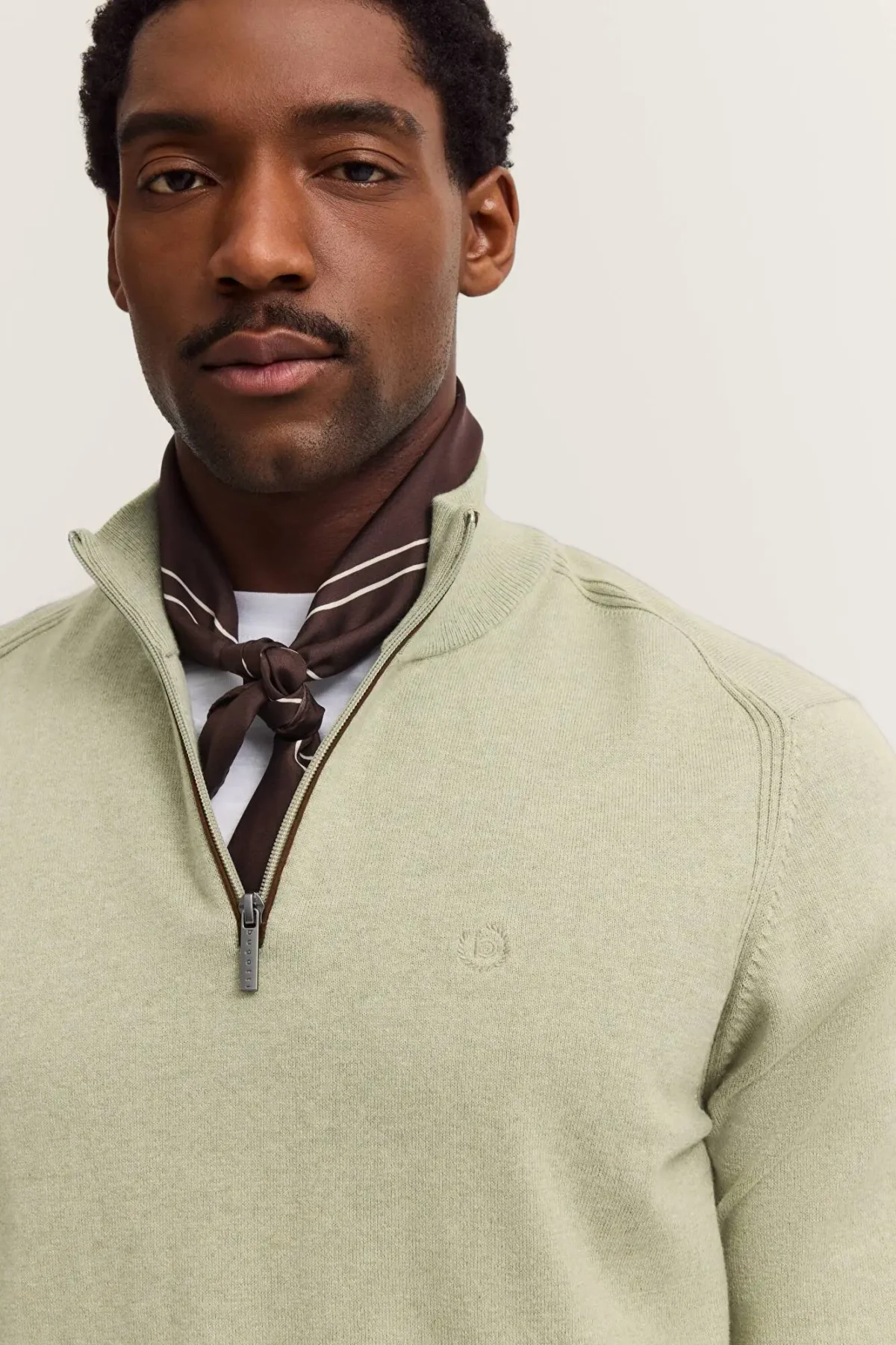 Этот элегантный свитер цвета мха отличается стильным дизайном и удобной молнией. Свитер добавляет нотку изысканности образу, а молния позволяет легко надевать и снимать. Стилизуйте с джинсами Bugatti для непринужденного образа.
